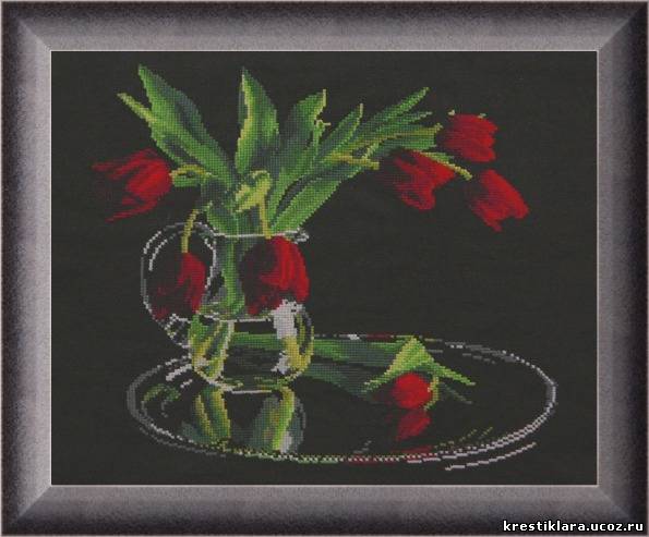 | Мои Тюльпаны на черном, размер 35х32см, 19 цветов, в 3 нити
